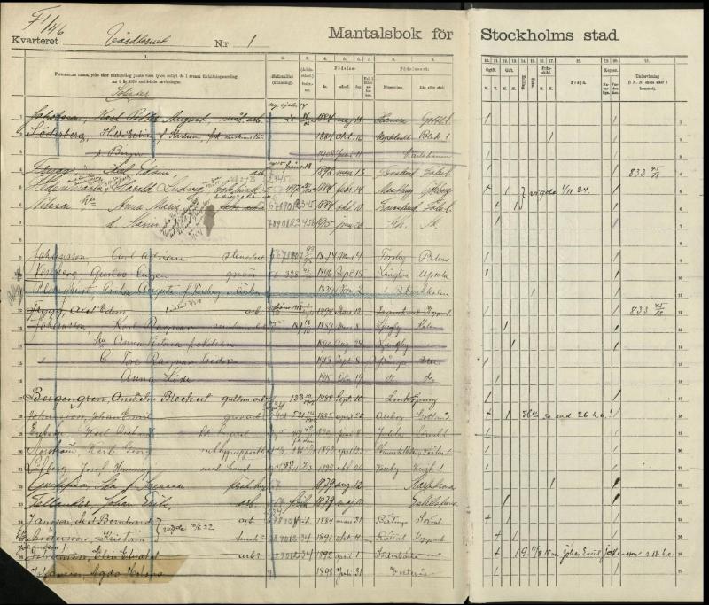 | Bosatt (17–19) | från 1915-05-27 till 1918-01-27 Kungsholmen, Stockholm |