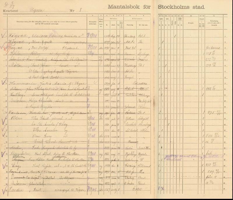 - Överståthållarämbetet, Skatteverket. Rotemännens arkiv. Rote 27 Karlbergsroten (A, AB) DIa:151 (1906-1926). Bild 540 / sid 27a, AID: v940576.b540.s27a